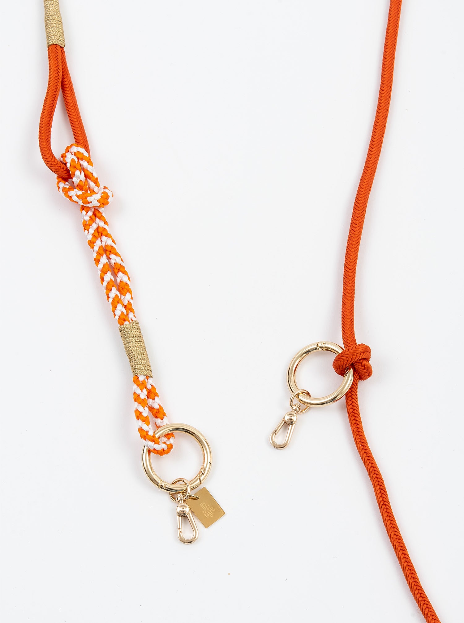 帯の結びを思わせる構造が特徴で、ロングストラップとショートストラップにセパレート可能。使い方次第で、表情が変わるデザインです。