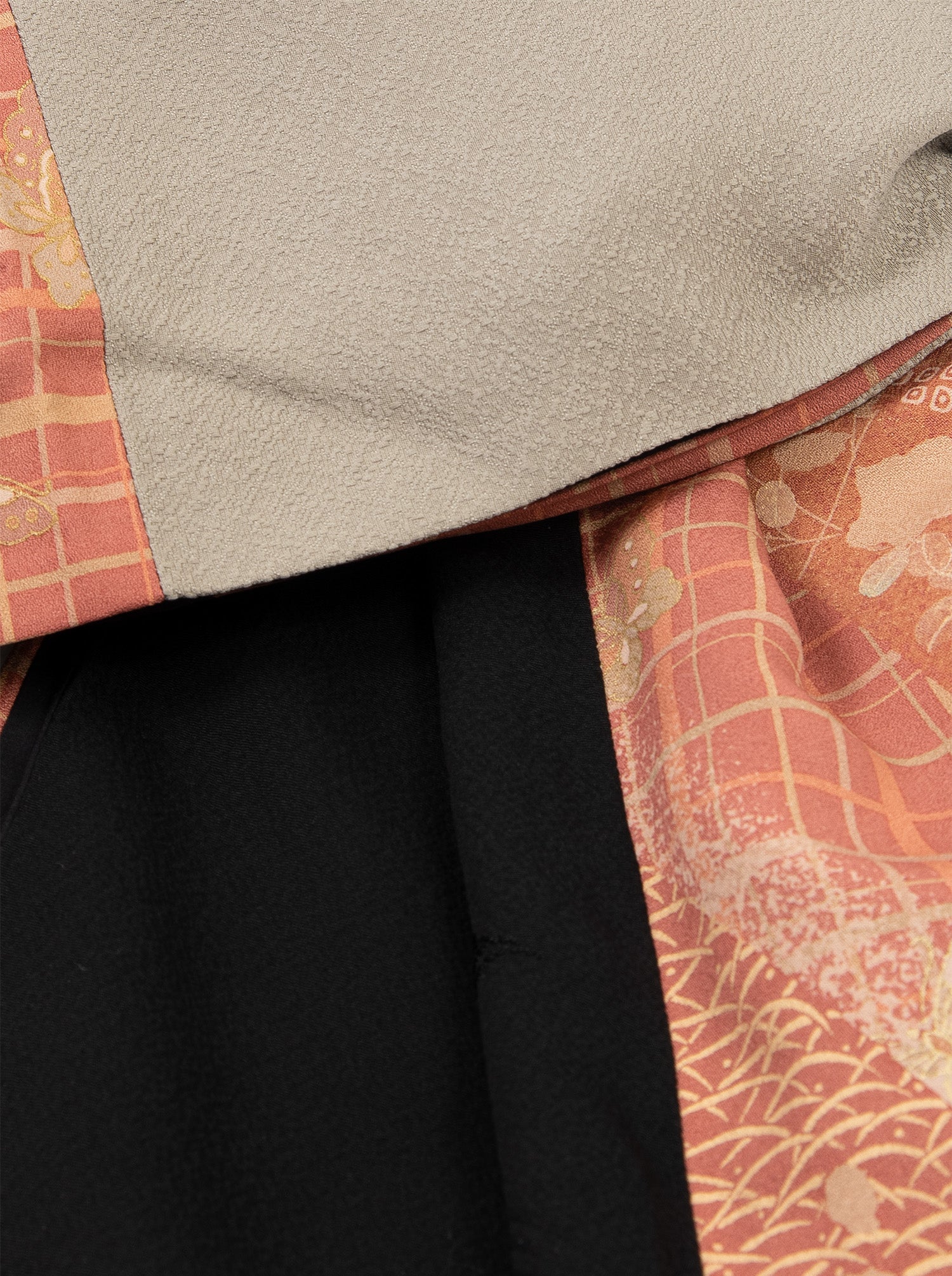 この製品は、着物をはじめとした様々な生地をリメイクして作られた1点ものです。古着素材の特性上、1点1点の素材/色/柄/サイズが異なり、若干のシミ/汚れ/ピリング(毛玉)/色褪せなどがある場合がございます。その特性をご理解の上、他の製品では味わえない風合いをお楽しみください。