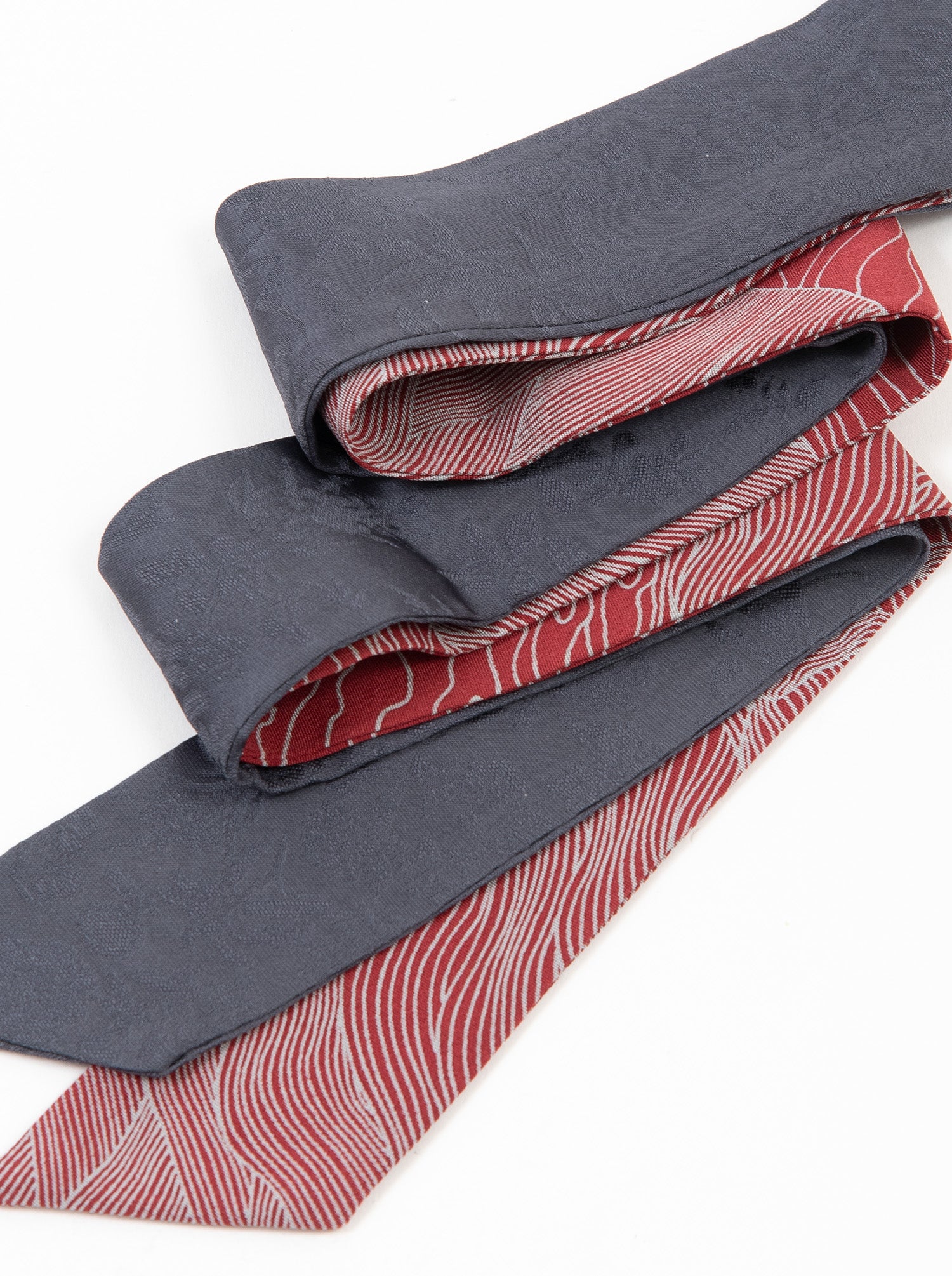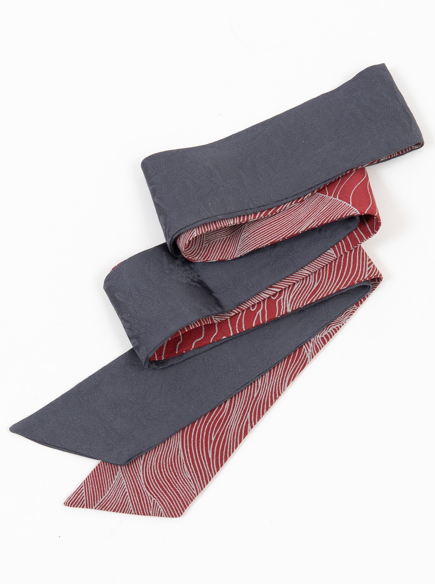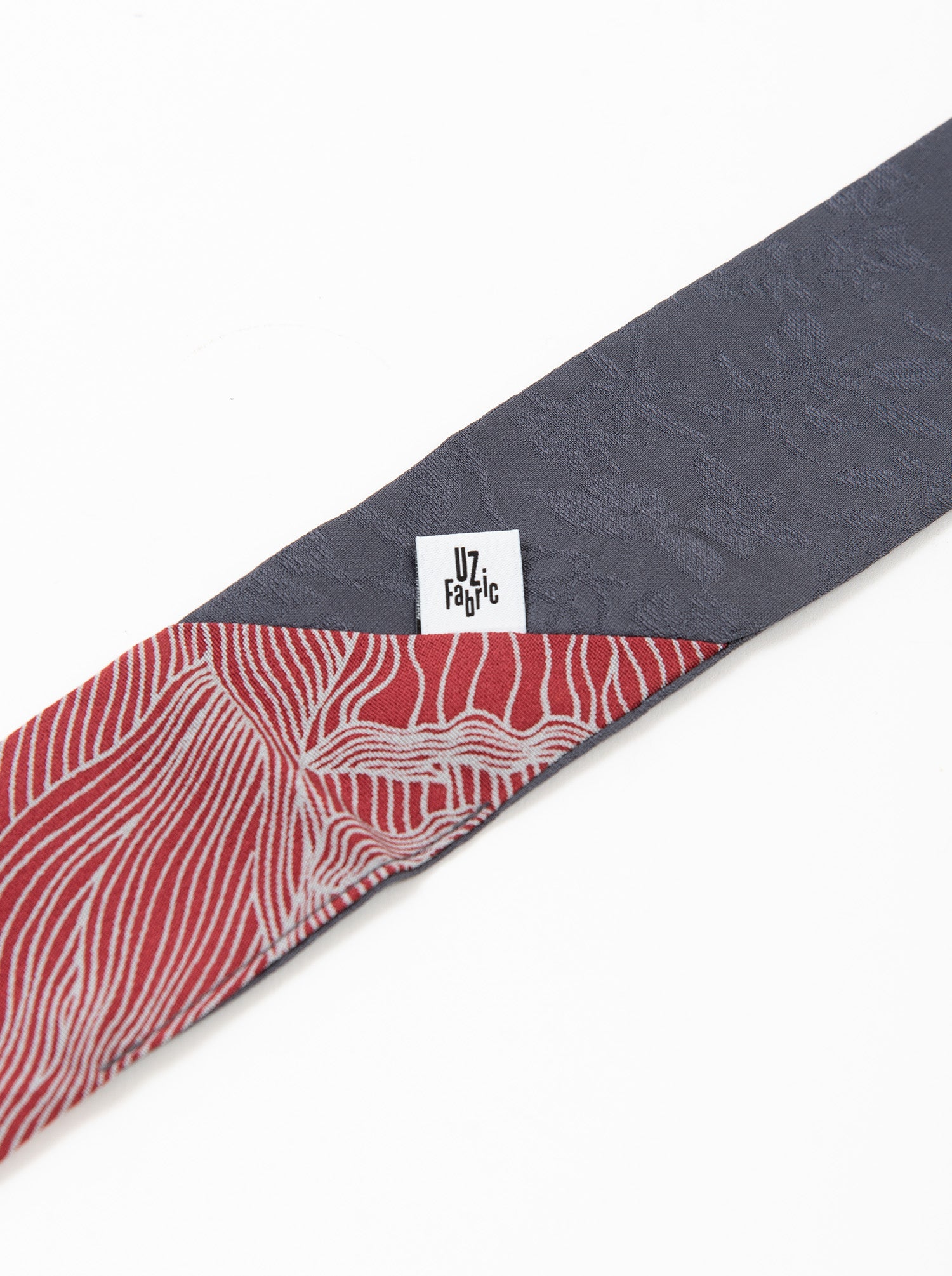 本来なら活用が難しい着物の襟部分を用い、UZ Fabricのコンセプトである「使い切る」を形にしたアイテムです。