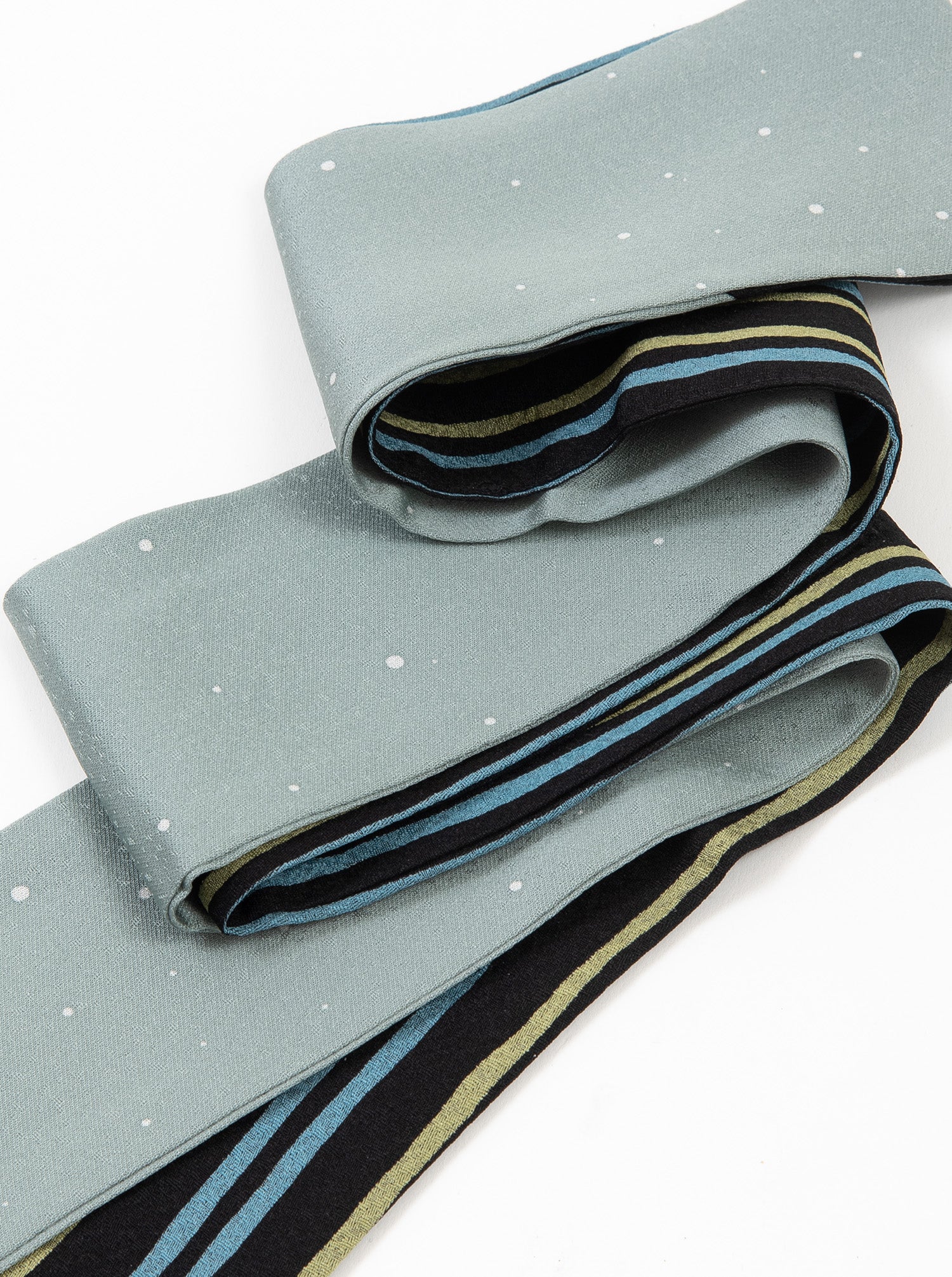巻き方によって2種類の生地の表情が変わり、自在なアレンジをお楽しみいただけます。