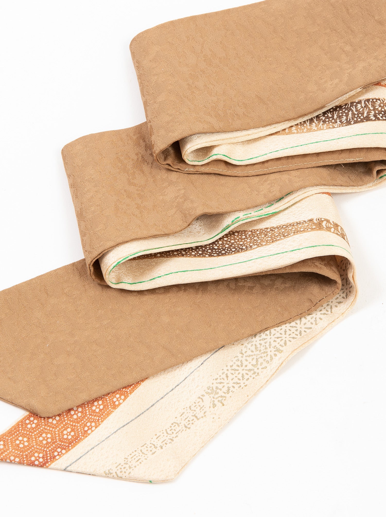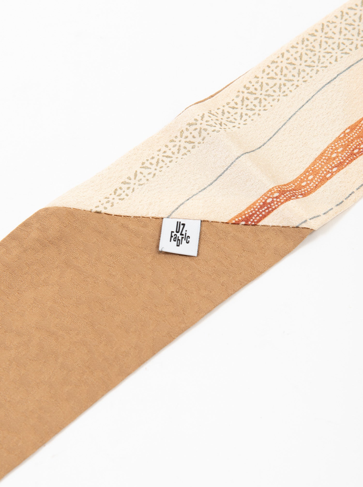 本来なら活用が難しい着物の襟部分を用い、UZ Fabricのコンセプトである「使い切る」を形にしたアイテム